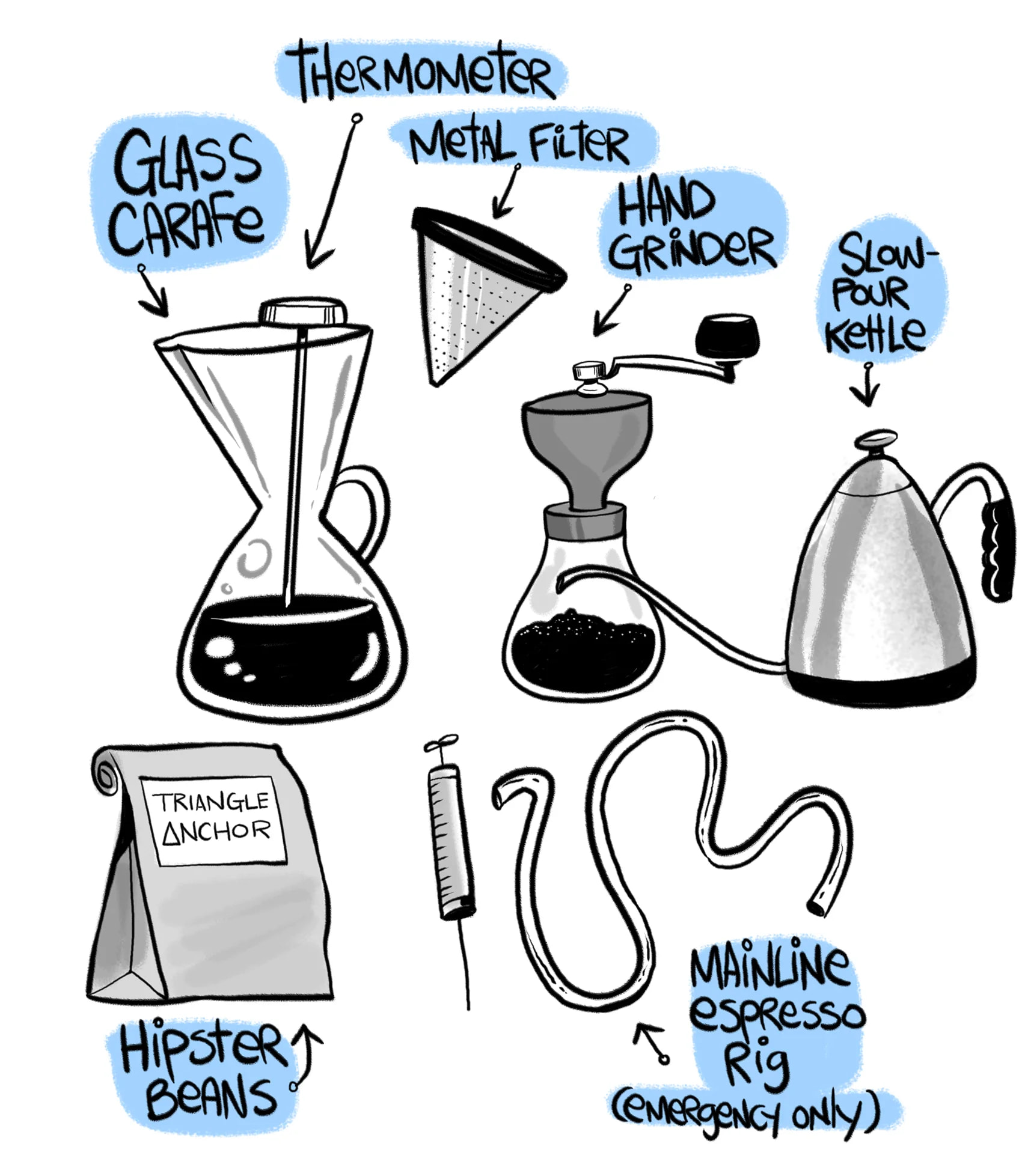 Seeing those āhipster beansā and āmainline rig" cracks me up. I like to drink coffee, but Iād probably quit if I had to go thru all of that for a pot, ha