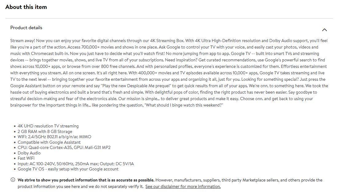Overall, I am pleased that Onn tv does have an alternative to Firestick especially if Amazon continue to block sideloaded apps.