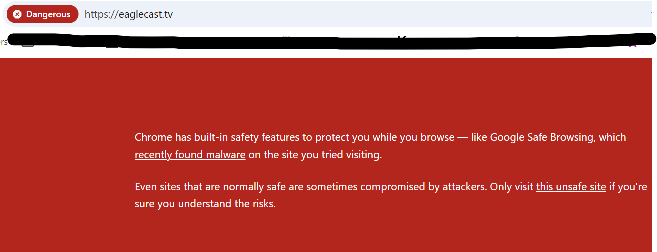 Ok Im real new to this IPTV thing. Eaglecast.tv coming up as Malware on chrome. Has anyone else had this expierience?