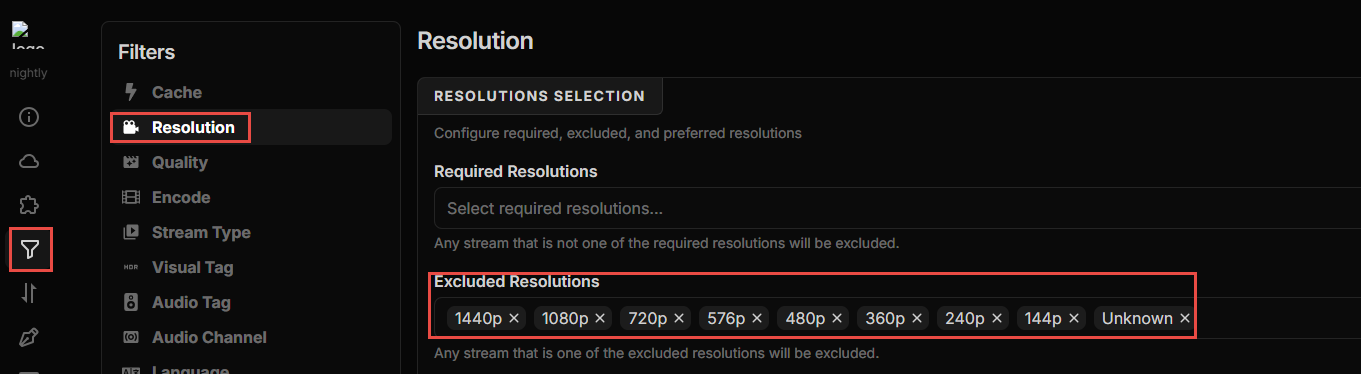 After I went into my AIOStreams config and specifically excluded all resolutions other than 4K, saved it, and then searched for the same show/episode in Stremio, it then only returned 4K results: