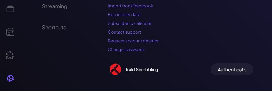 You add your Trakt authorization on your computer and it will sync to your streaming device. Click on the gear on the far left column at the bottom to access SETTINGS.