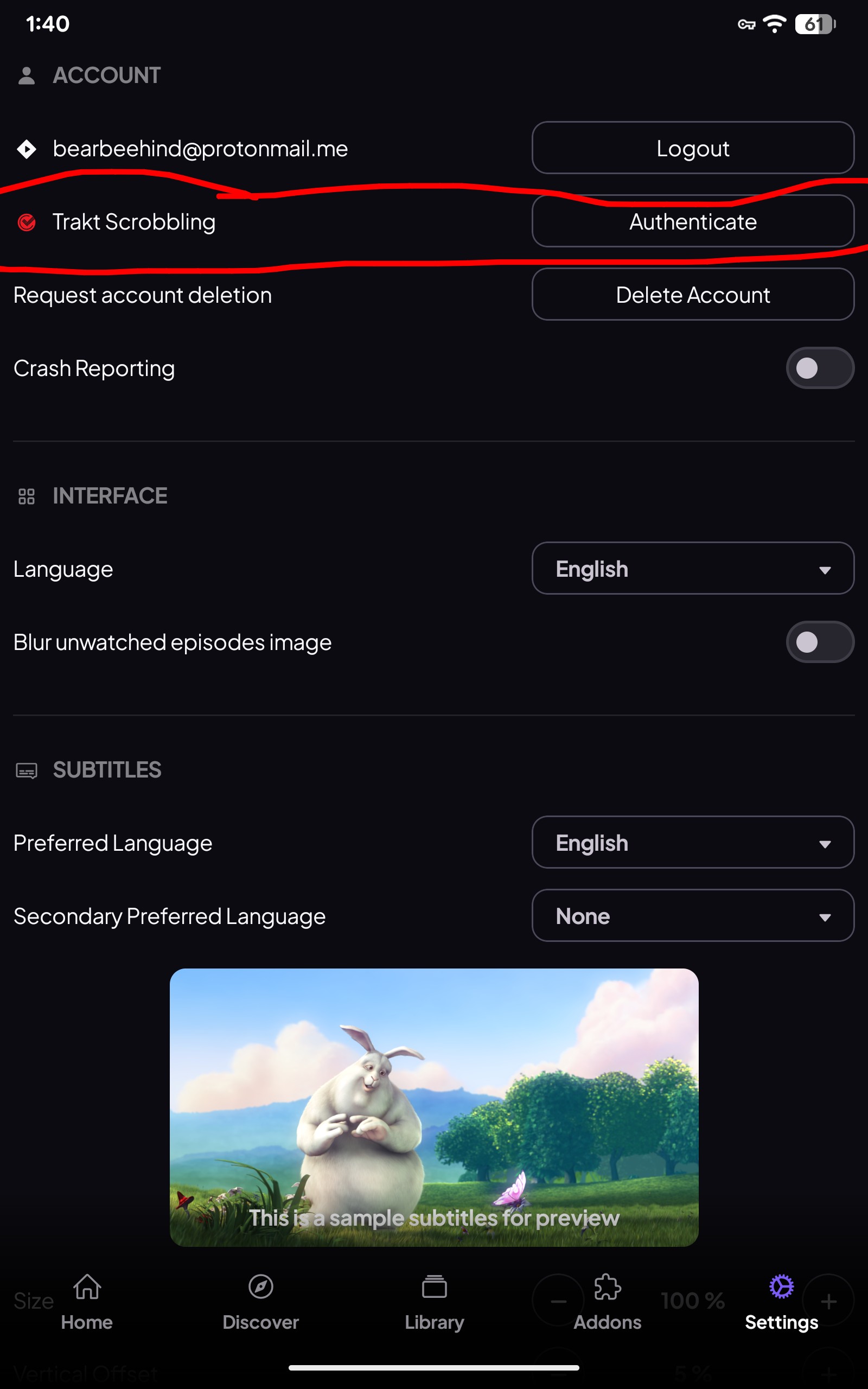 But if you must use Trakt then make sure it is on in the device where you have Stremio installed and you are logged into both accounts. Open stremio and go to the settings. Look for Trakt scrobbling. Click the Authenticate button on the right. Wait for a couple of minutes for it to pop up a notice that trakt is integrated into Stremio. From there the Trakt setup is up to you.
