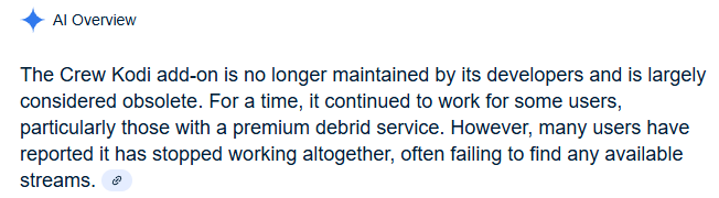 My Opinion of âWhat to doâ: Delete the Crew and Install Umbrella add on with Coco Scrapers Module. Test it to see that it works good, Then add The Gears add on as a second way to obtain viewable content. Of course implement the Debrid service of your choice (I use Premiumize ) Good Luck and Safe Streams!