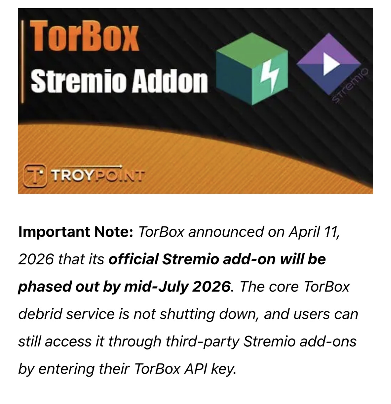 Ok, so Iāve decided on plumping for signing up with TorBox and using this through Stremio, although there is a notice on Troyās How To Configure & Install TorBox Stremio Addon tutorial which states the following: