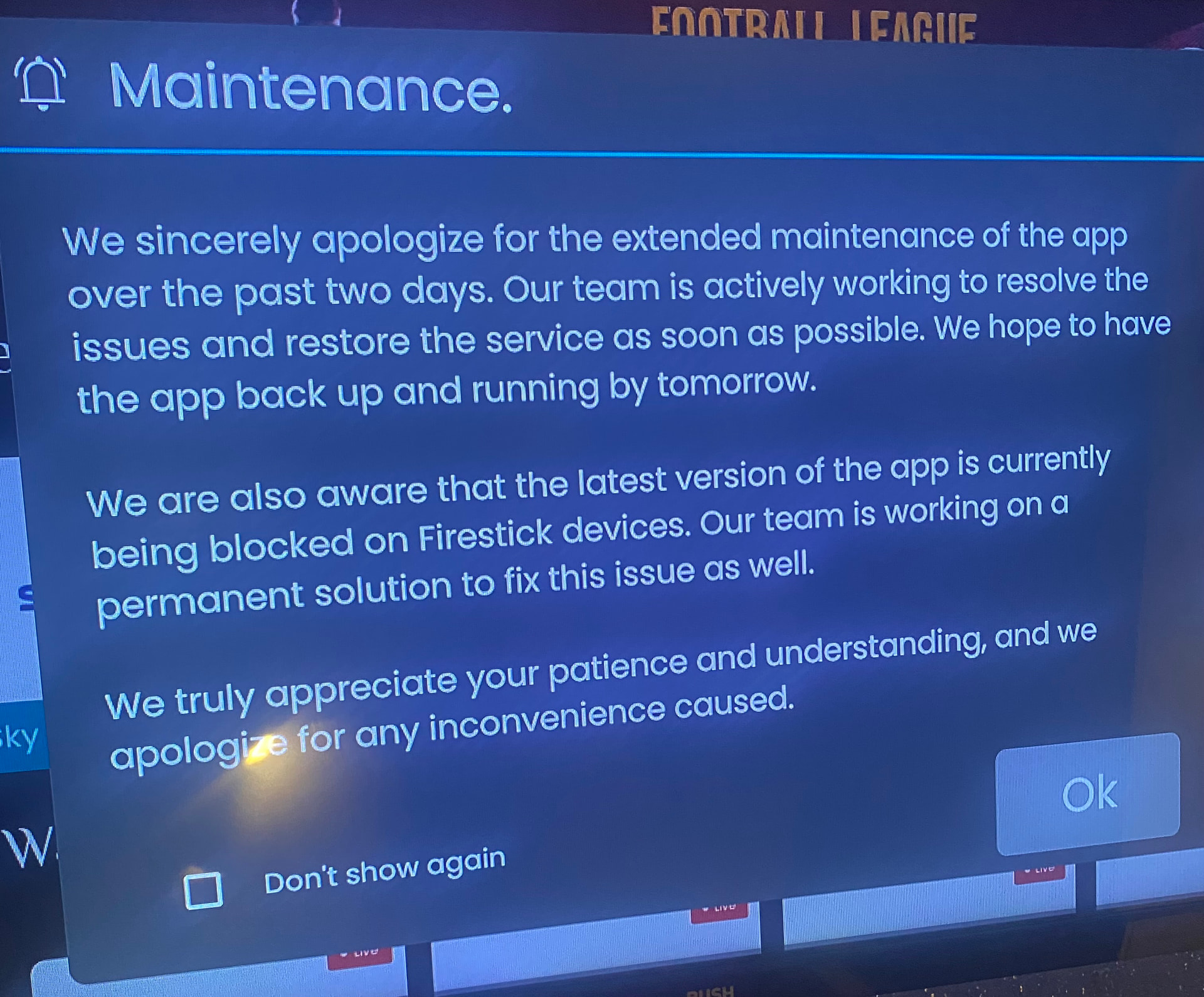 Furthermore, we are aware that the Sportsfire 2.0.8 version of the app is currently being blocked on Amazon Firestick devices. Please rest assured that our team is actively working on a permanent solution for this issue & we expect to release an update within the next few days.