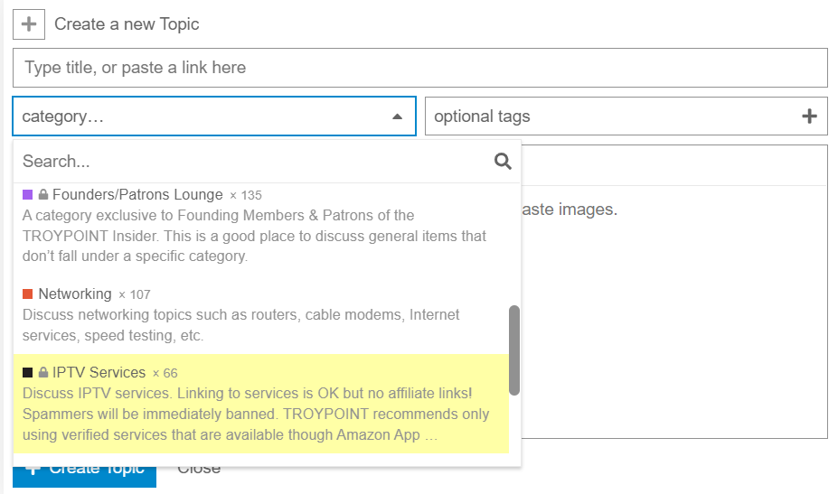It is the drop-down option when you create a thread. The “category” drop-down, use IPTV SERVICES with the lock next to it. See screenshot below: