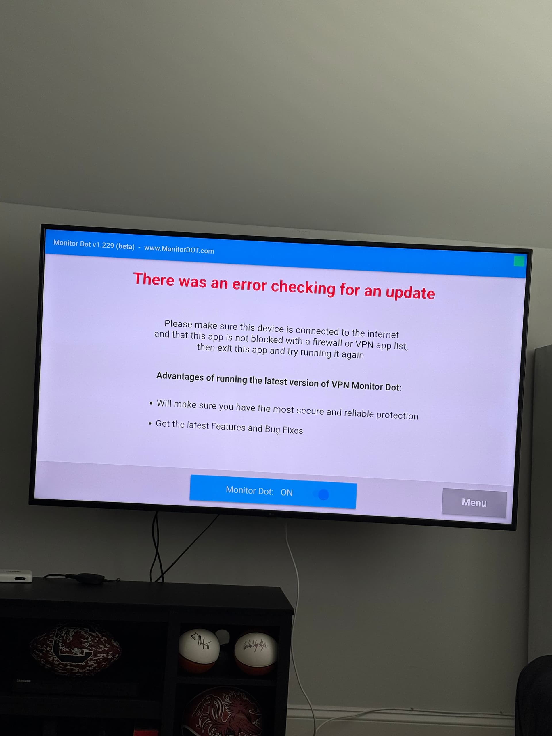 Iâm not having that issue since I took Monitor Dot out of the VPN. However, on the latest Amazon 4k Max (2nd Gen) firmware I keep getting a popup when I run Monitor Dot saying âthis software was designed for an older version of Androidâ. It eventually works but the popup is annoying.