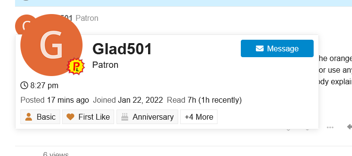 Also, the fact that you are able to post in the Founders/Patrons Lounge also indicates you are a Patron.